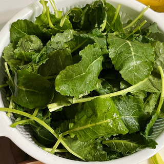 Fully rescued. Rapini from 7 Jan rescue, defrosted, squeezed dry, fried with garlic